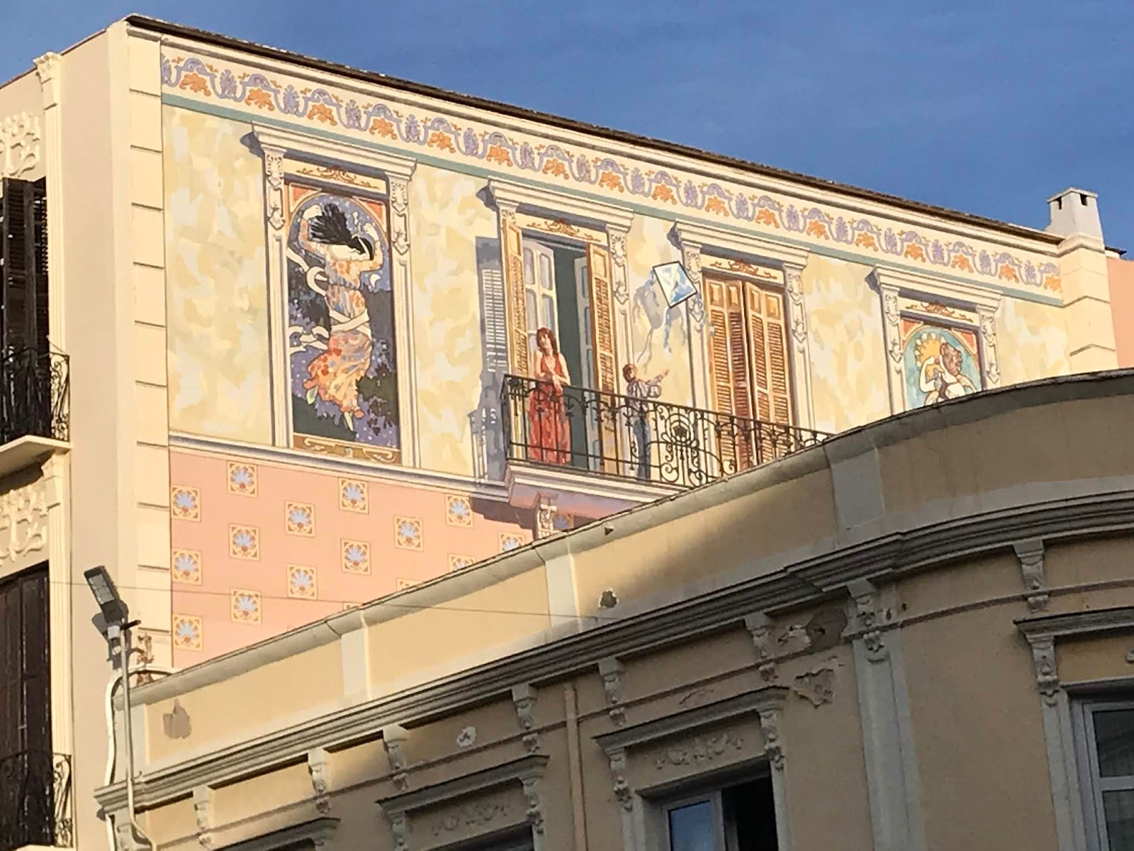 ....foto mural en la pared, al comienzo de ese Paseo Marítimo Alcalde Rafael Ginel, (nada especial éste) y de esa escultura grande en la Plaza del Consejo de Europa....
