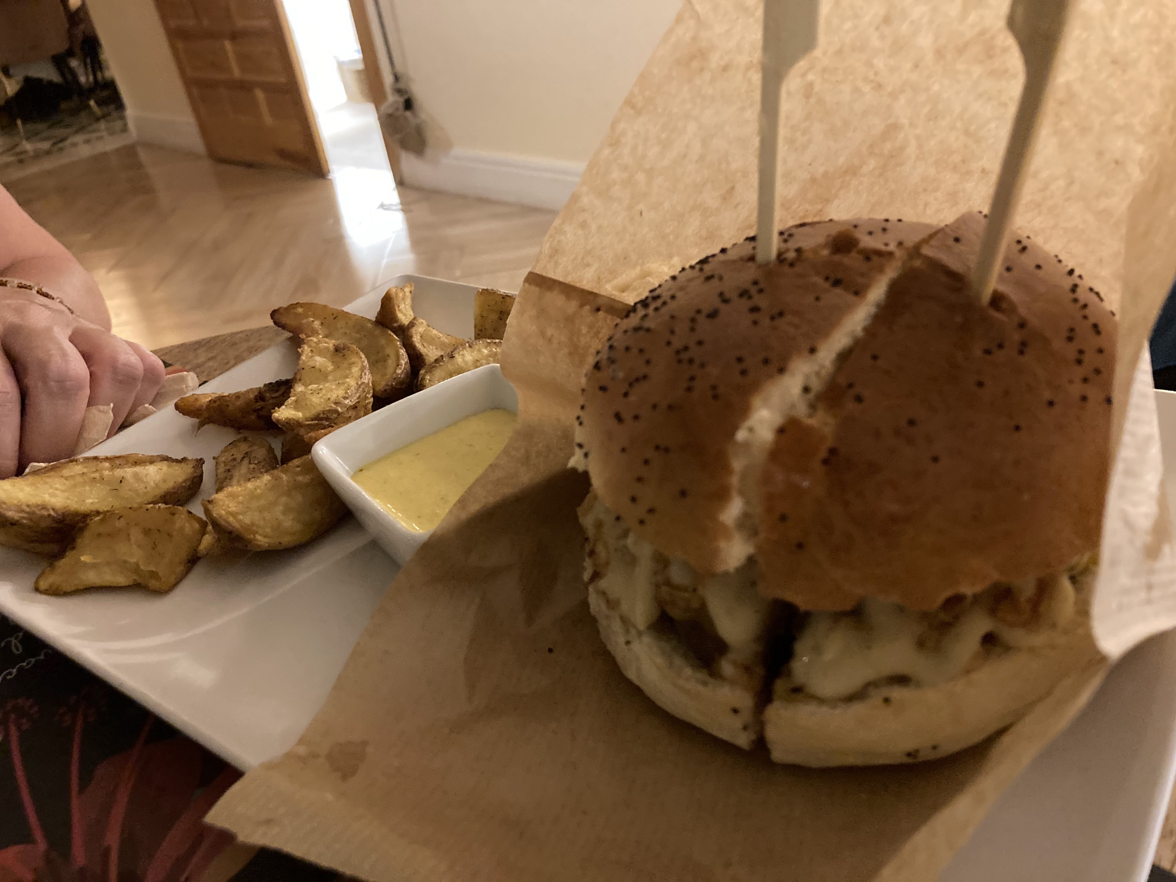 Era la hora de cenar y por teléfono reservamos en uno cercano a nuestro hotel, justo al lado contrario del casco histórico, en el Camino de los Sastres se encuentra Vaquena Burguer.